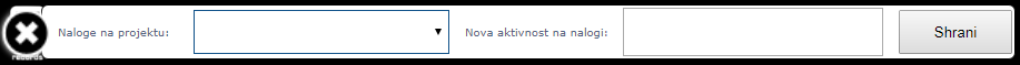 Projekt tvorijo naloge, naloge pa so razdrobljene na aktivnosti. Preko prikazanih ikon lahko vpisujemo nove naloge in ativnosti. | |