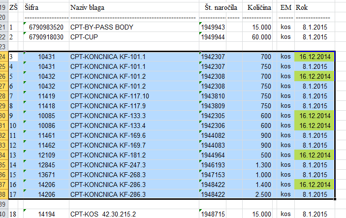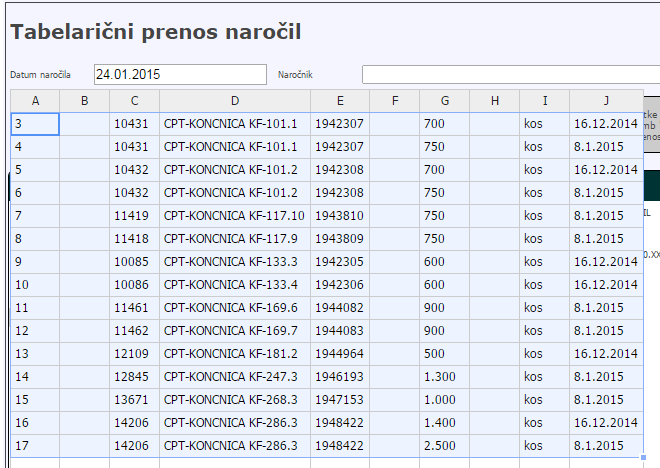 Prenos naročil iz Excel datoteke