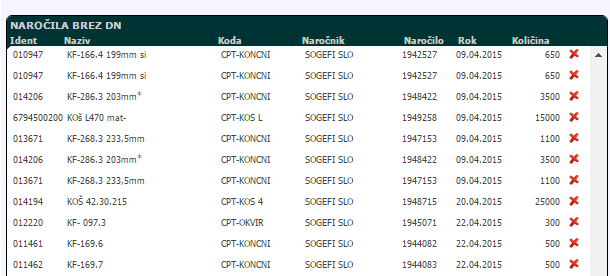 | V tabeli NAROČILA BREZ DN izberemo postavko, kjer želimo spremeniti rok dobave. | |