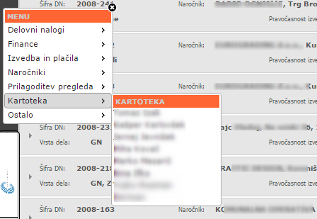 Drugi način vnosa realizacije pa je preko menija KARTOTEKA >>> [Ime izvajalca]. | |