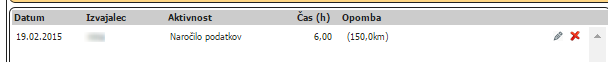 Vpise realizacije lahko tudi naknadno urejamo. S klikom na ikono svinčnika na desni strani vrstice pregleda realizacije se prikažejo podatki. |
