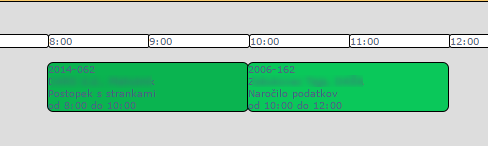 | Trajanje aktivnosti določimo s pomočjo drsnika na zgornjem robu. Z miško lahko premikamo robove začetka oz. konca aktivnosti oz. premikamo celoten modro obarvan drsnik. | ![]() |