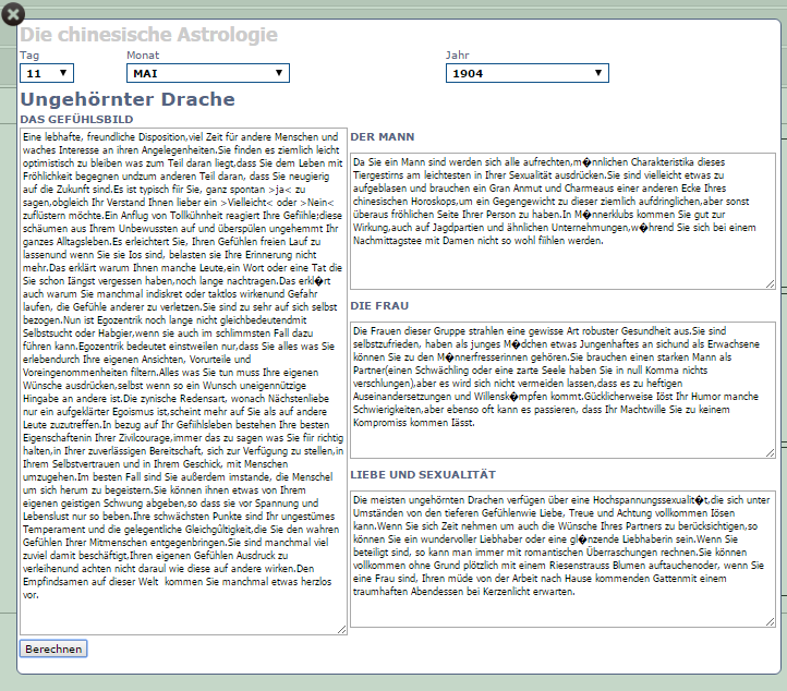 Mit dem Klick auf BERECHNEN wird der Inhalt aufgeladet werden. |